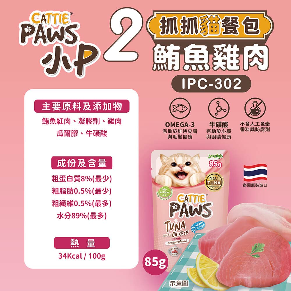小P-CATTIE PAWS-抓抓貓餐包_IPC-302鮪魚雞肉