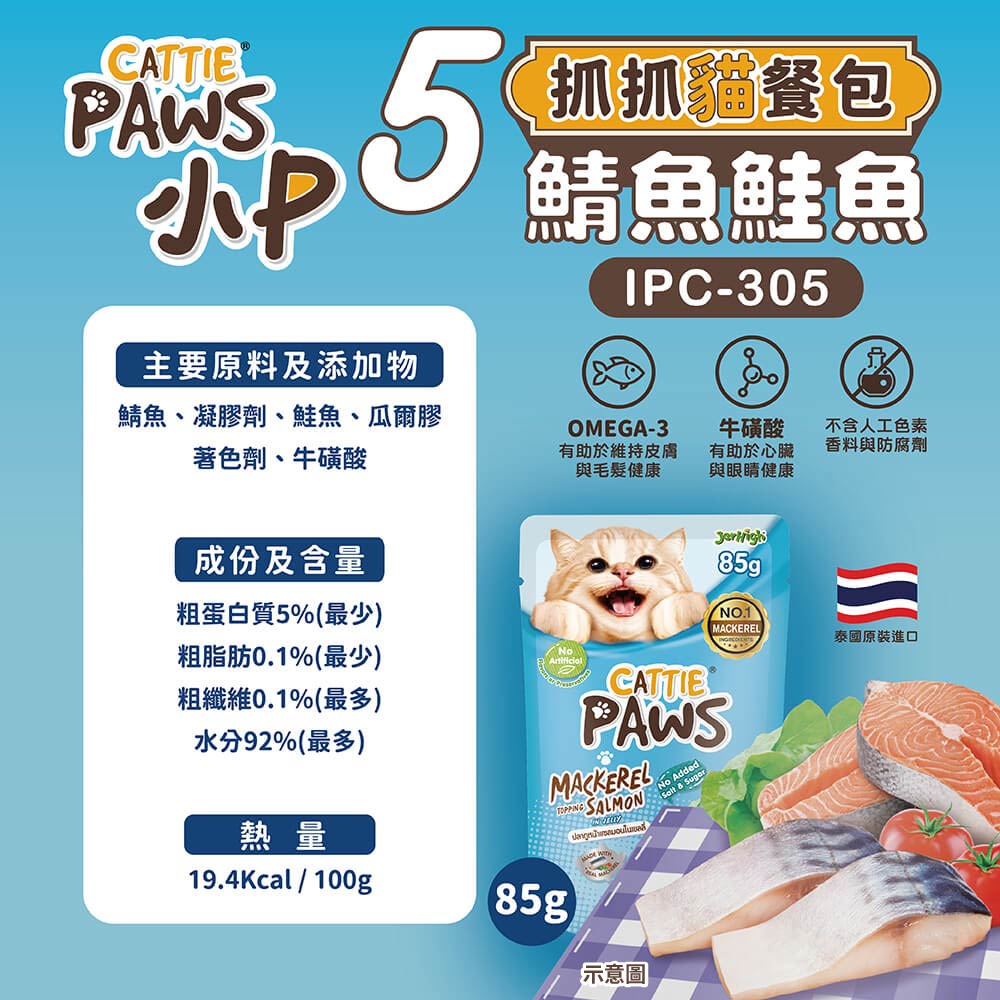 小P-CATTIE PAWS-抓抓貓餐包_IPC-305鯖魚鮭魚