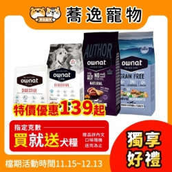 【買就送】《免運》歐娜特 ownat 狗狗飼料 無穀飼料 全齡犬 狗飼料 小顆粒 大顆粒 1kg/3kg
