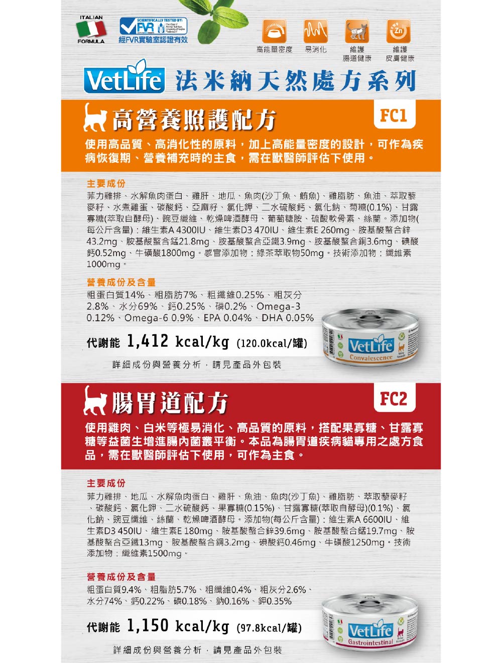 [ Vet Life處方罐為特殊配方,須在獸醫師評估下使用,初次使用時建議與原飲食混和食用,以減少不適應 ]